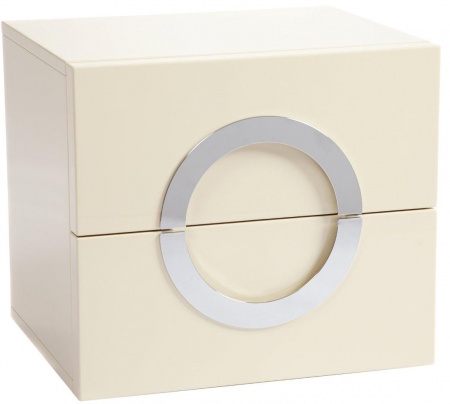Стильная современная тумбочка Stella имеет кубическую форму, спереди она украшена декором в форме круга, выполненного из хромированного металла, одновременно служащим и ручками для открывания. Сама тумба сделана из МДФ в молочном цвете. Сочетание металла и дерева, белого и серого смотрится всегда выигрышно. Тумба имеет два вместительных ящика, может быть использована в качестве подставки для телевизора. Тумбочка Stella станет прекрасным дополнением к тумбам из коллекции Fuller, выполненным в таком же стиле. Купите в нашем магазине такой комплект и ваш интерьер заметно преобразится!