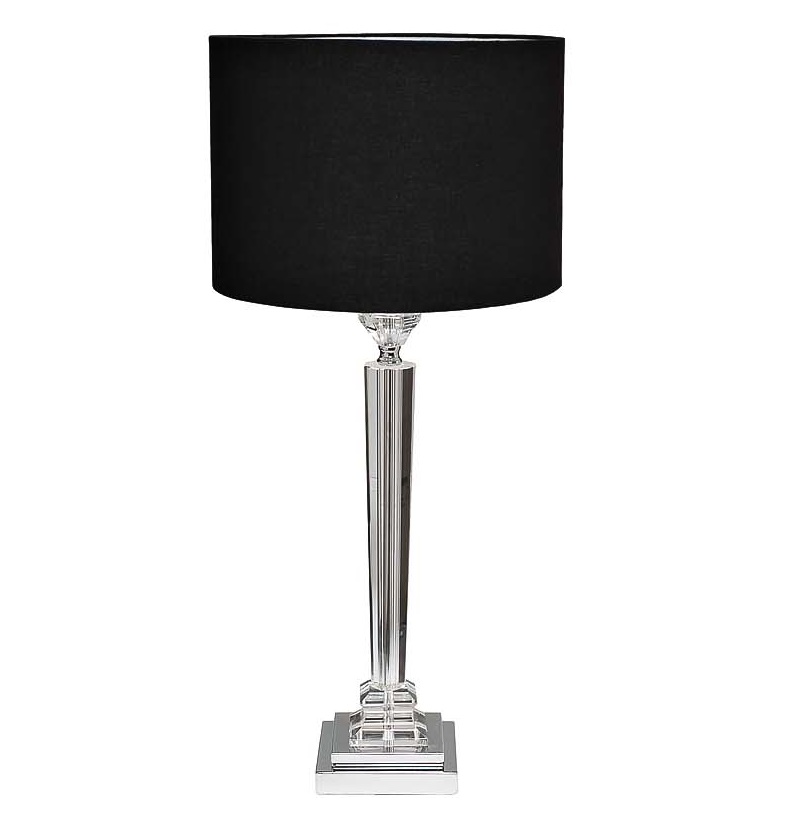 основание - прозрачное стекло с металлическими вставками, плафон - натуральный лен черный