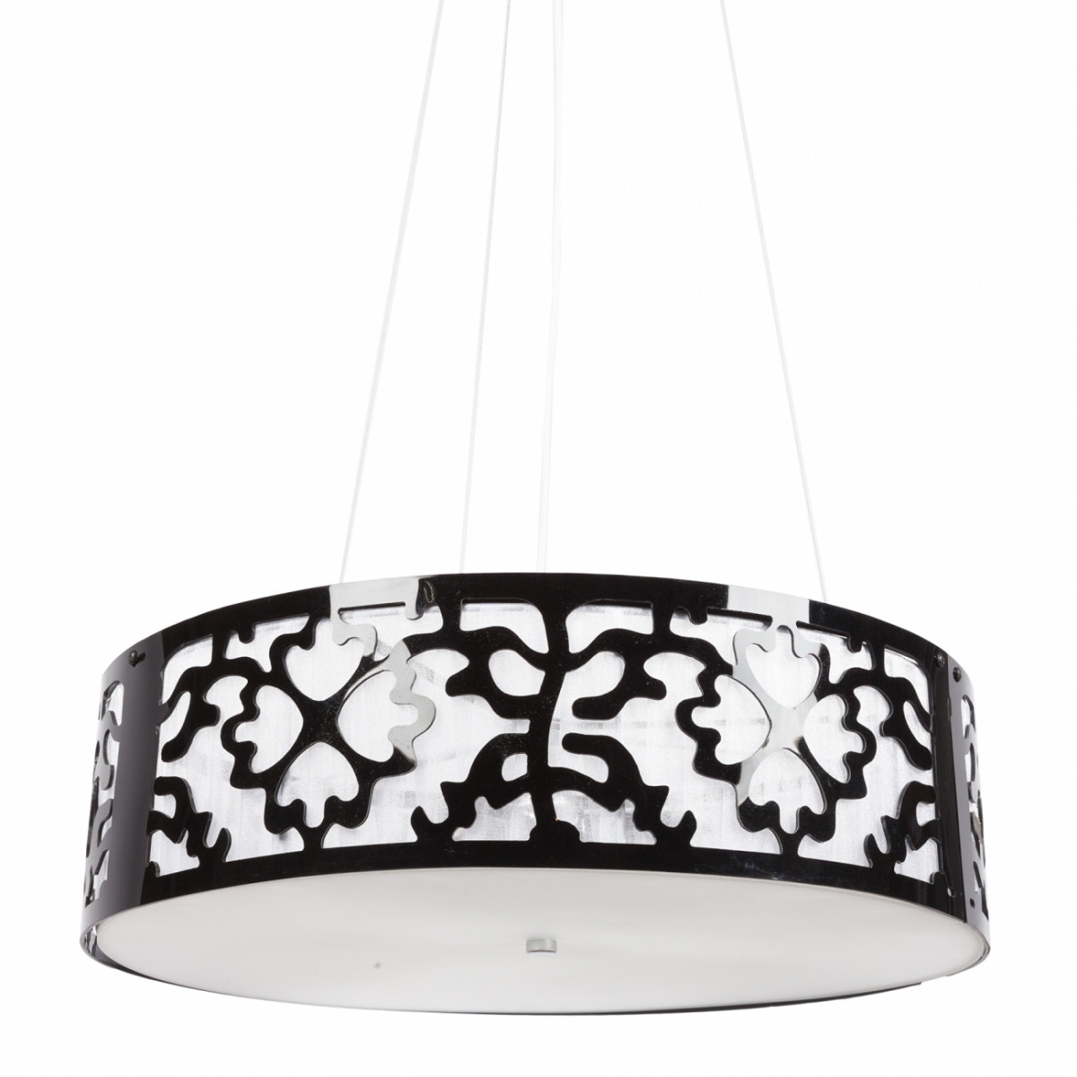 Подвесная люстра: абажур черный акрил и белое стекло размером диаметр 50 см, высота 15 см, основание хромированное железо, предназначена для использования со светодиодными лампами Е14-3 лампы лампы не включены в комплект