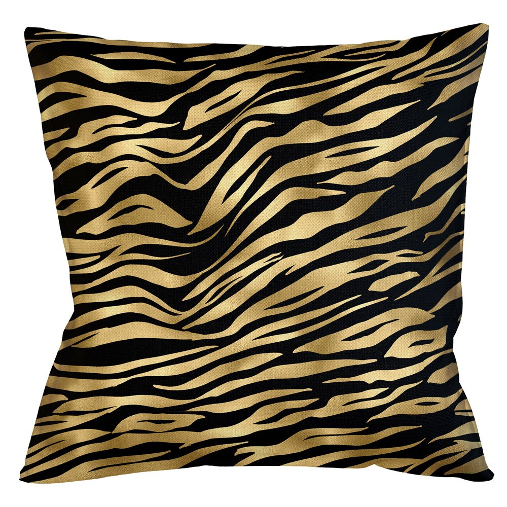 Предметы интерьера и аксессуары из натуральной шкуры или материалов, имитирующих окрас животного мира, присутствуют в коллекциях многих брендов. Однако в последнее время дизайнеры решили «поохотиться» на диких животных. Может быть даже, не совсем натуральных. Но разве это имеет значение? Орнамент на подушках нанесен краской, имитирующей золото. Игра различных оттенков желтого и бежевого цветов создает иллюзию блестящего покрытия.